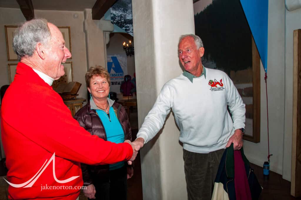 While I worked for Lou at Rainier Mountaineering for years, I didn’t get to know Jim in person until much later, during my time at Eddie Bauer and especially during the filming of our 2012 film, High & Hallowed: Everest 1963. In that year, Jim and his wife, Diane Roberts, joined us on the trek into Everest Basecamp, and their son, Leif, was there, too, climbing the route his dad scaled 49 years earlier.